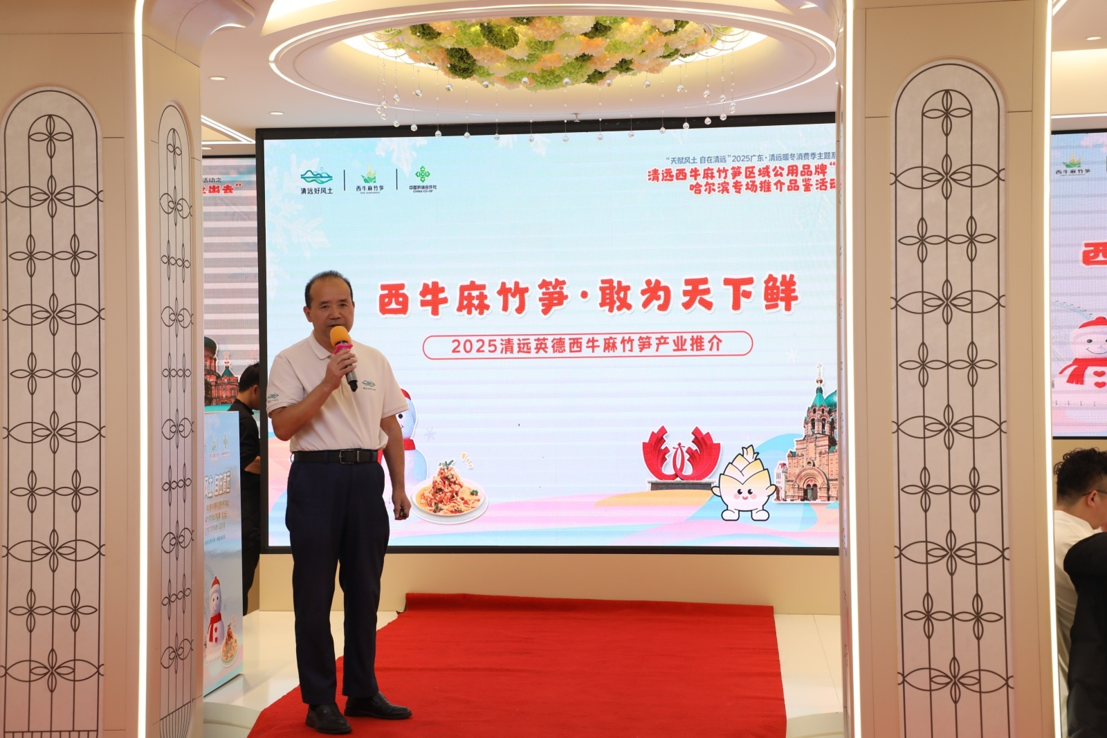 清远市人大常委会副主任杨德银在致辞中表达了此次北上的深层期望:“我们热切期盼能与各位进一步深化合作、凝聚合力,携手共探粤黑合作的新机遇,共同将‘西牛麻竹笋+黑土优品’的南北组合,打造成为东北人民的家常菜、增鲜菜、心头菜。”