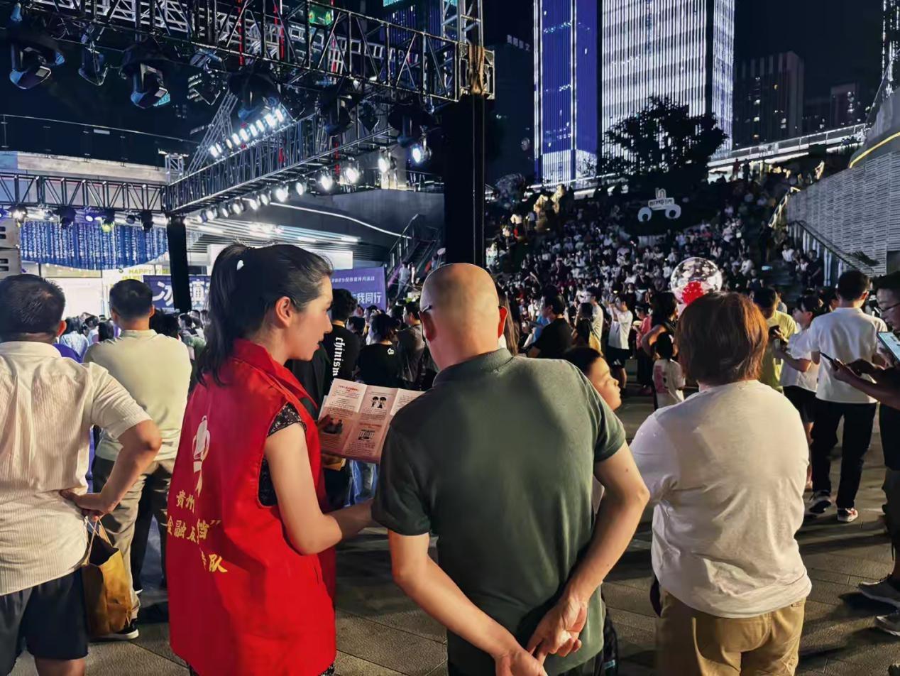 在广场一角,民生银行贵阳金阳南路支行与观山湖区反诈中心搭建起“移动辨假站”,成为广场中人气十足的“打卡点”。工作人员化身“移动讲师”,现场传授识别假币的实用技巧,并讲解收到假币后的正确处理方式,帮助公众有效降低因假币引发的纠纷与损失风险。