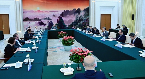 2025年7月30日,中共中央政治局委员、外交部长王毅在北京会见美中贸易全国委员会董事会代表团。